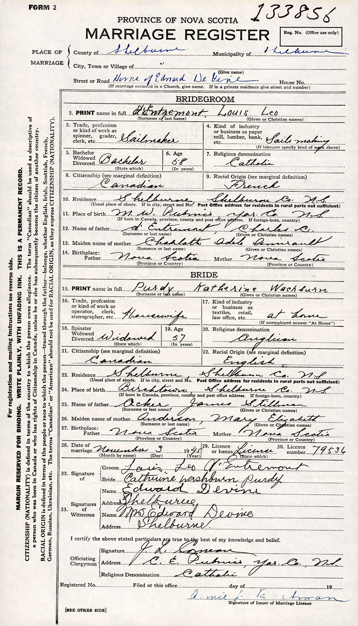 1. PRINT name in full d'Entremont, Louis Leo