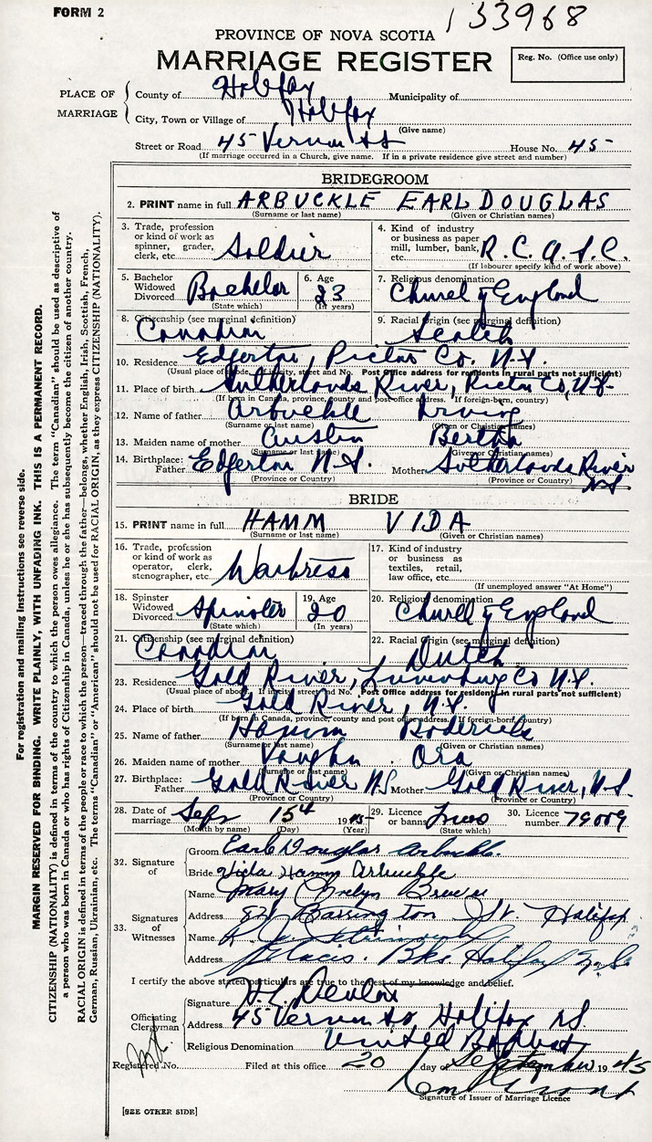 Groom Earl Douglas Arbuckle