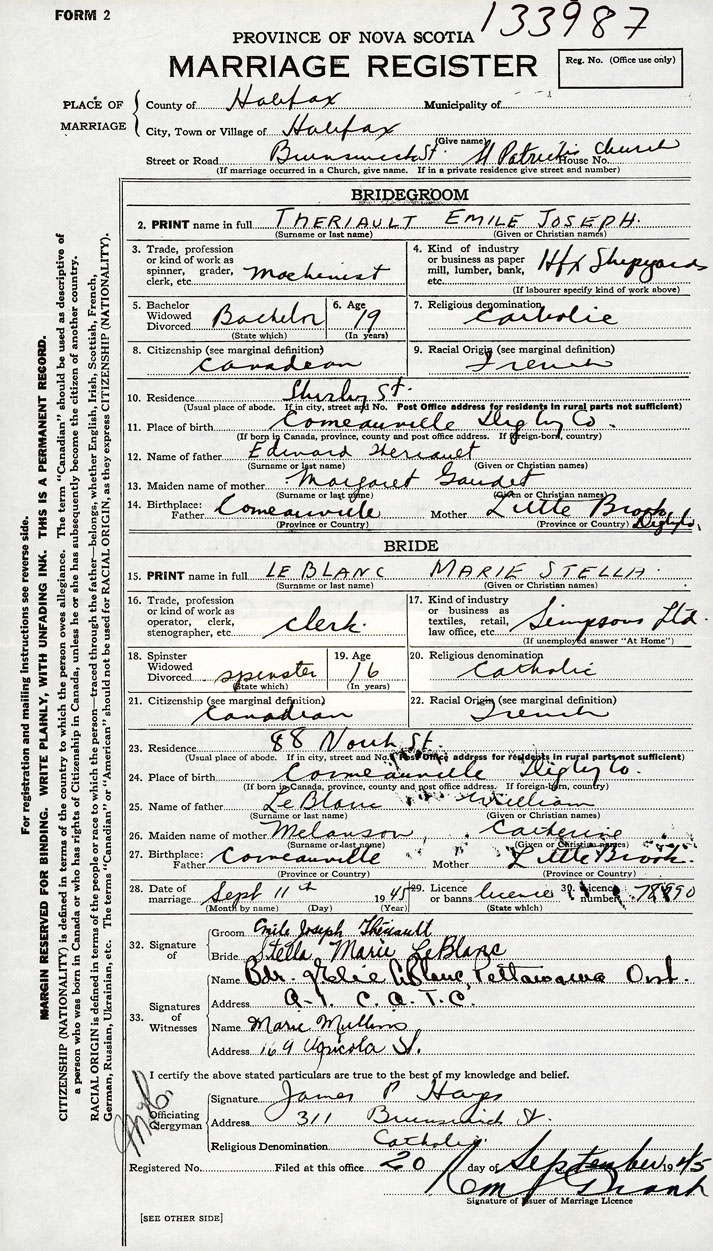 Groom Emile Joseph Theriault