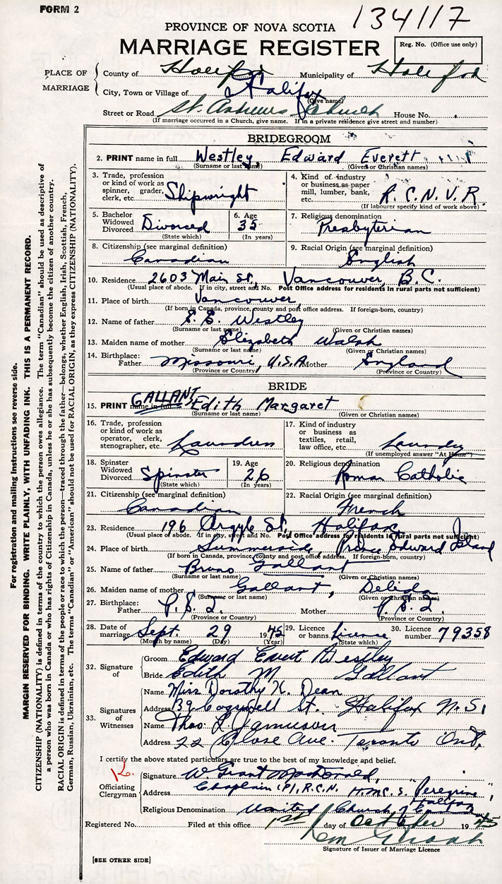 Bride Edith Margaret Gallant