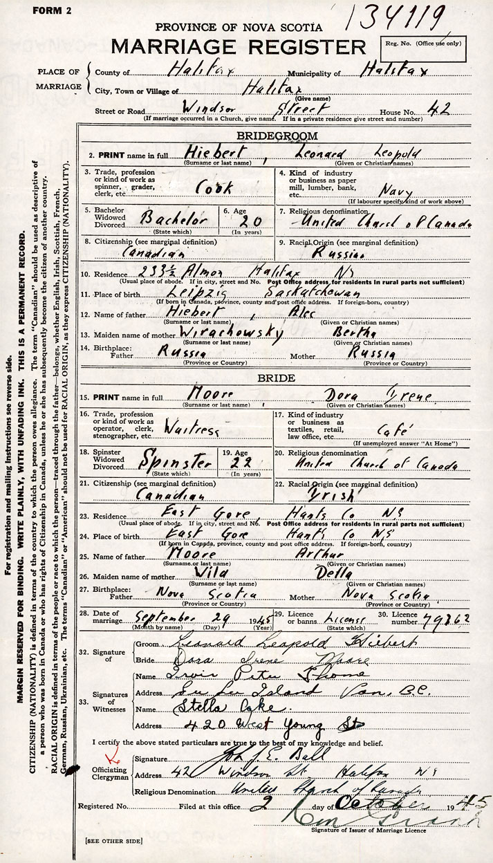 26. Place of marriage 42 Windsor St Halifax, Halifax County