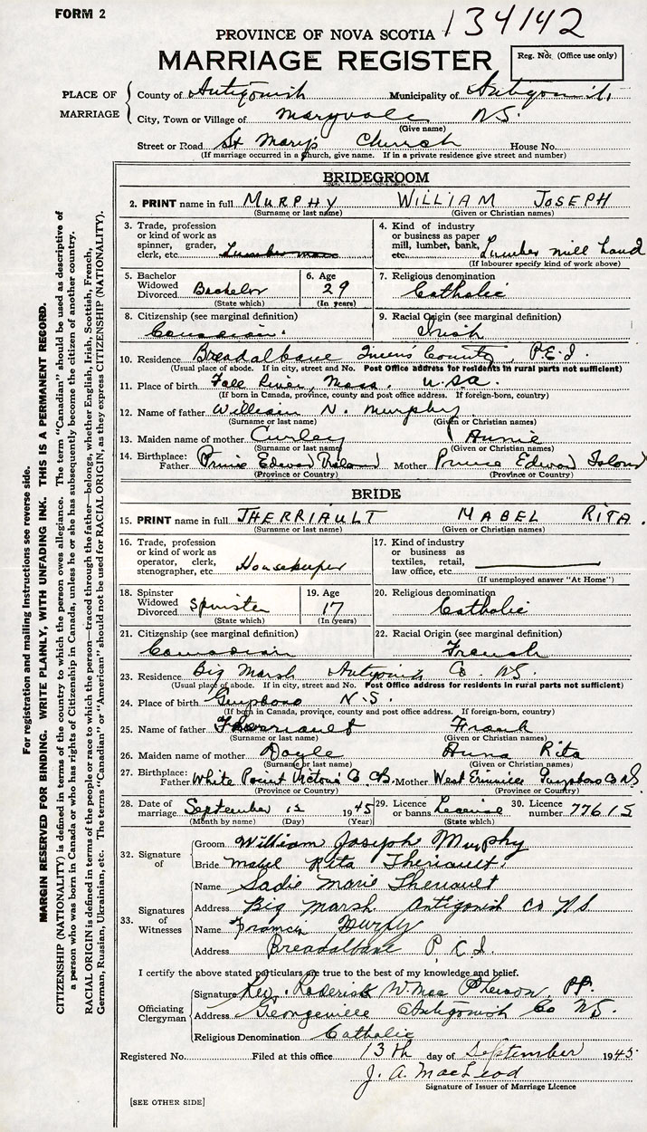 Bride Mabel Rita Therriault
