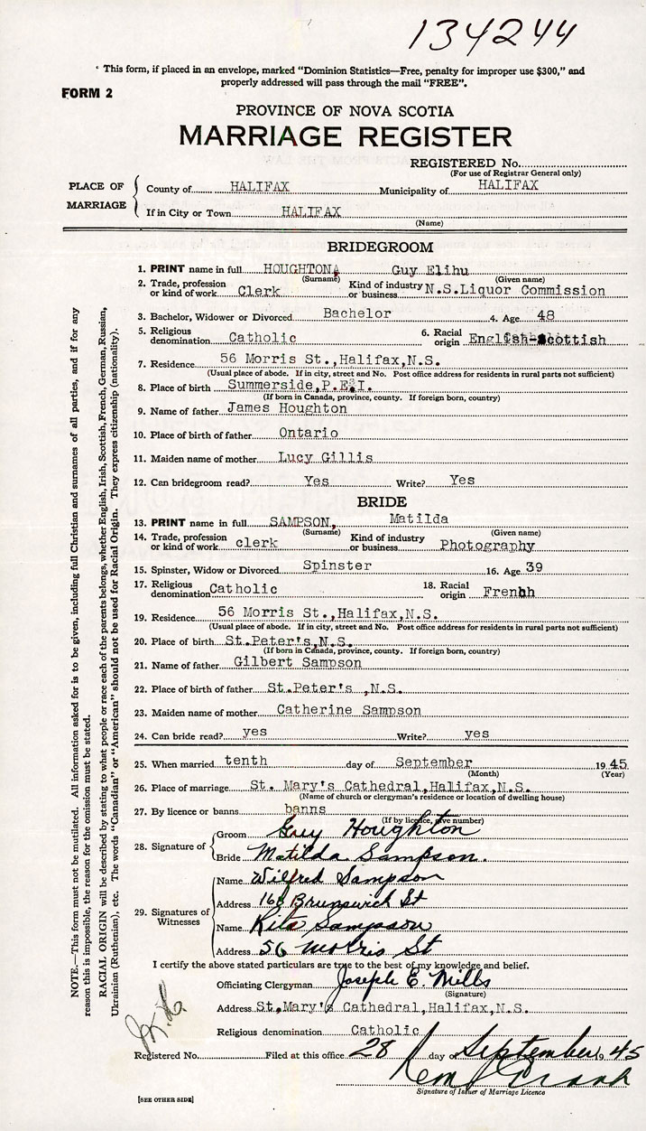 26. Place of marriage St. Mary's Cathedral Halifax, Halifax County