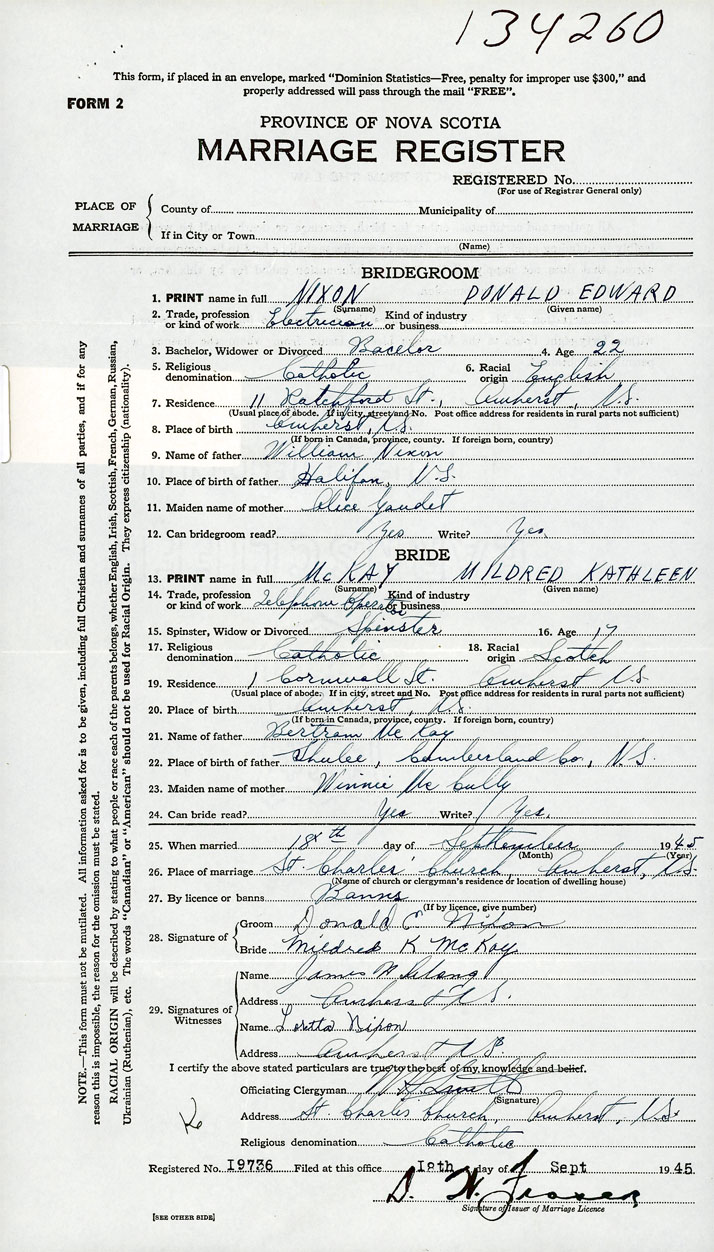Groom Donald Edward Nixon