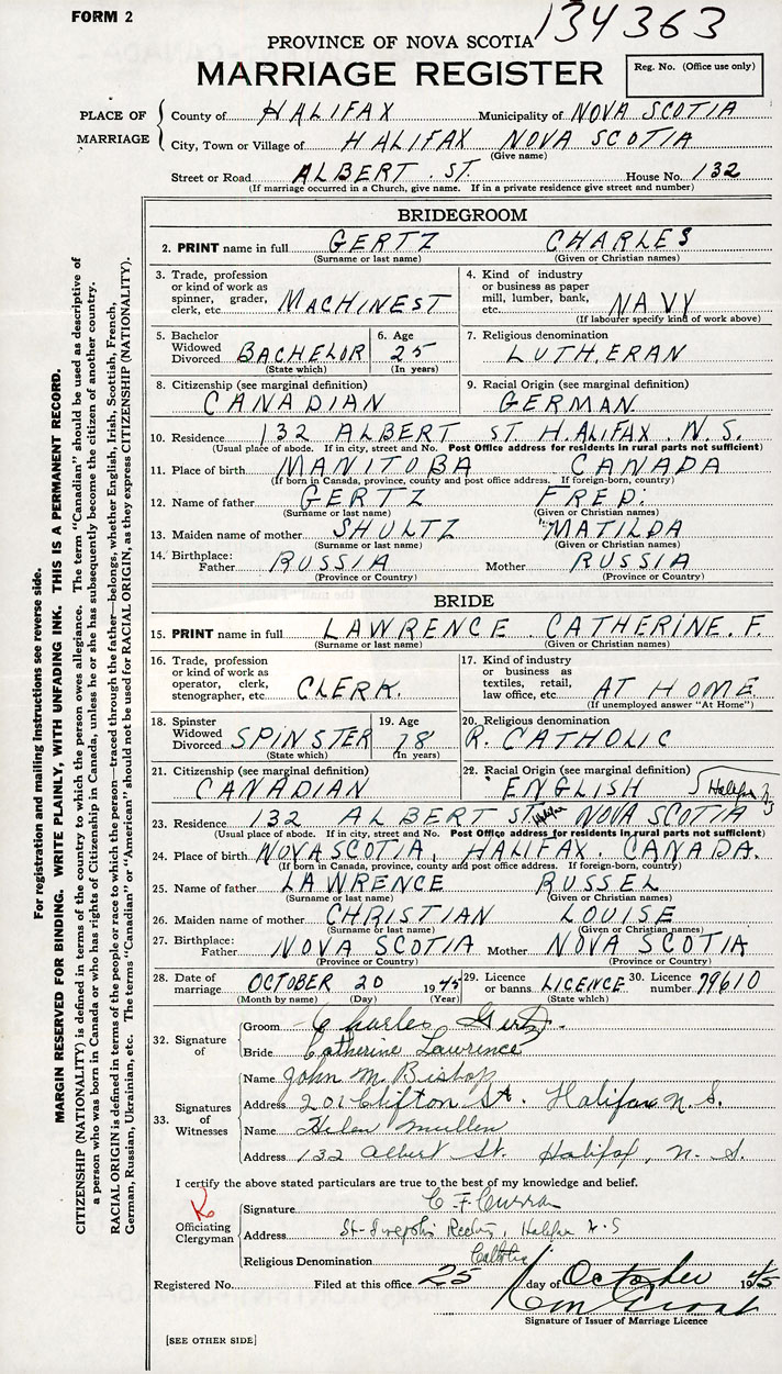 26. Place of marriage Albert St Halifax, Halifax County