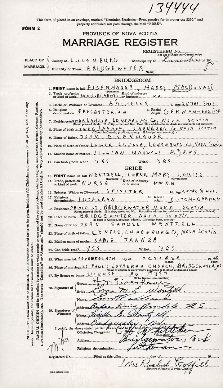 1. PRINT name in full Eisenhauer, Harry MacDonald