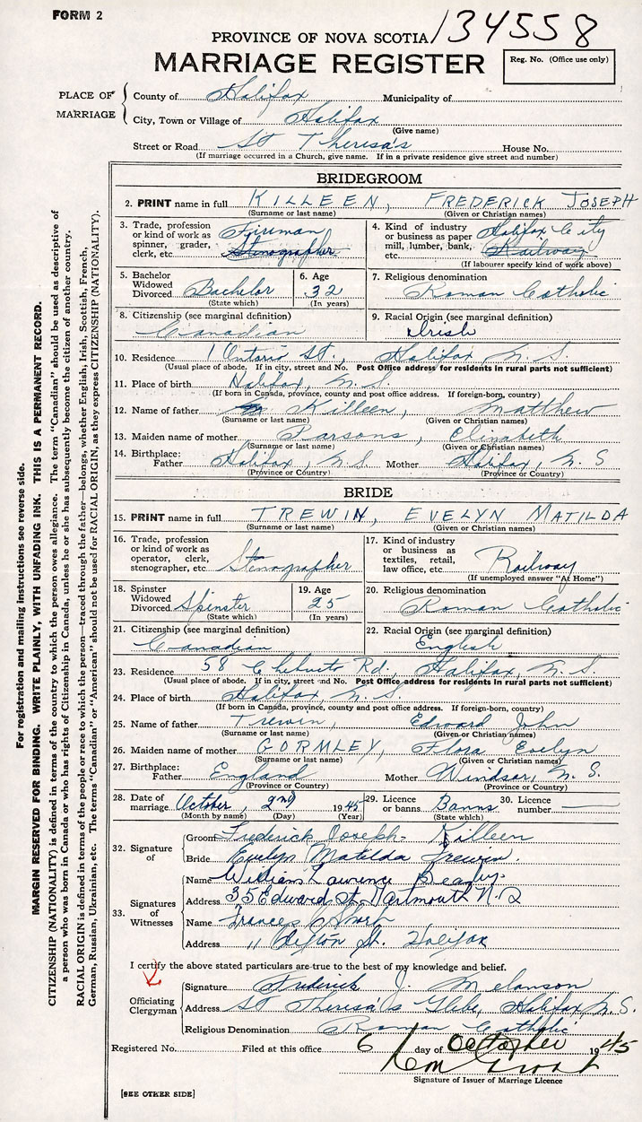 Groom Frederick Joseph Killeen