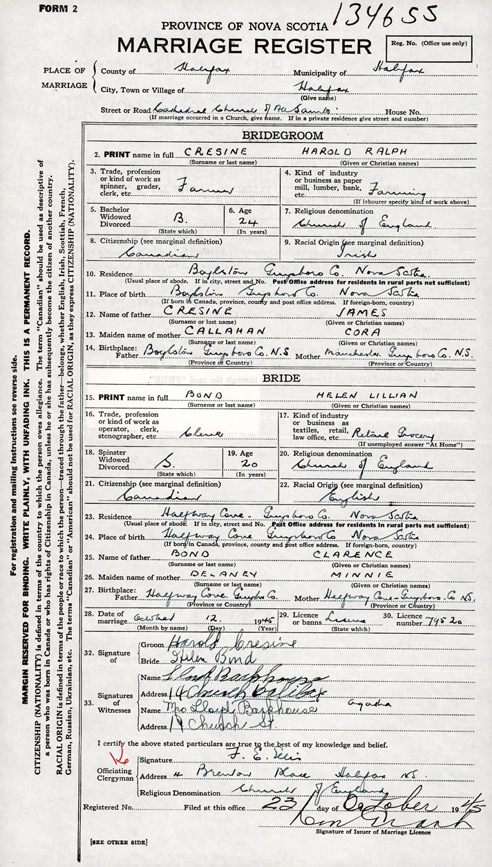 Groom Harold Ralph Cresine