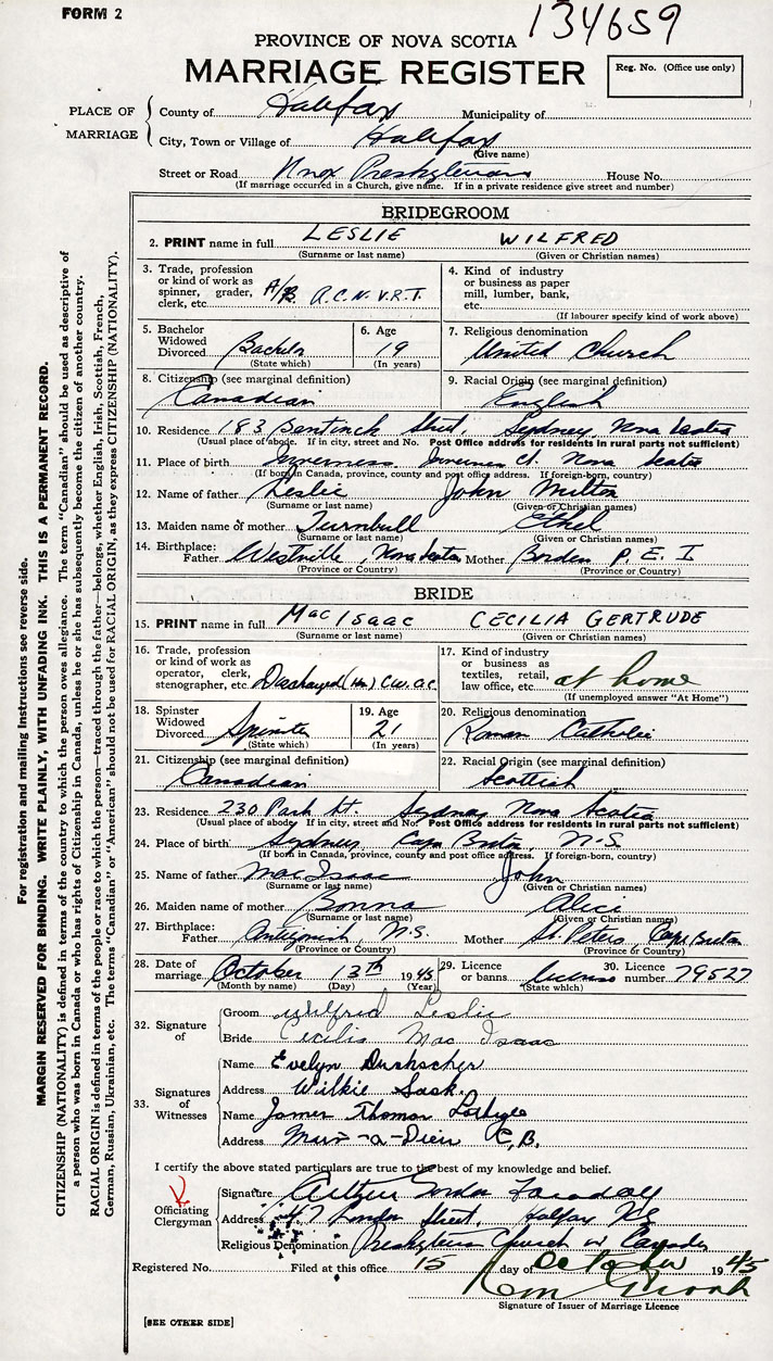 Bride Cecelia Gertrude MacIsaac