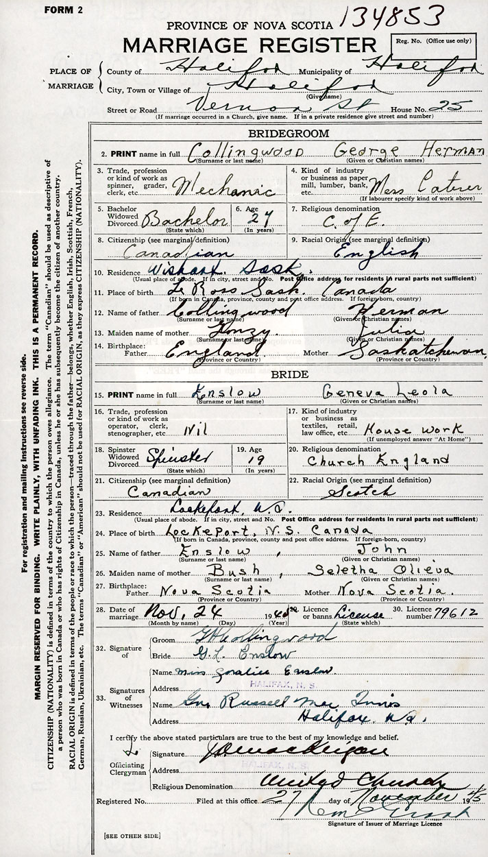 26. Place of marriage Vernon St Halifax , Halifax County
