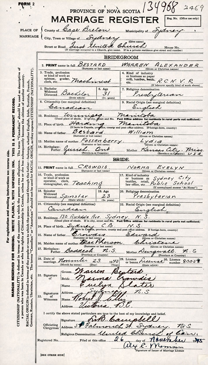 Note: Groom's mother born Kansas City, Missouri; bride's mother born Dingwall