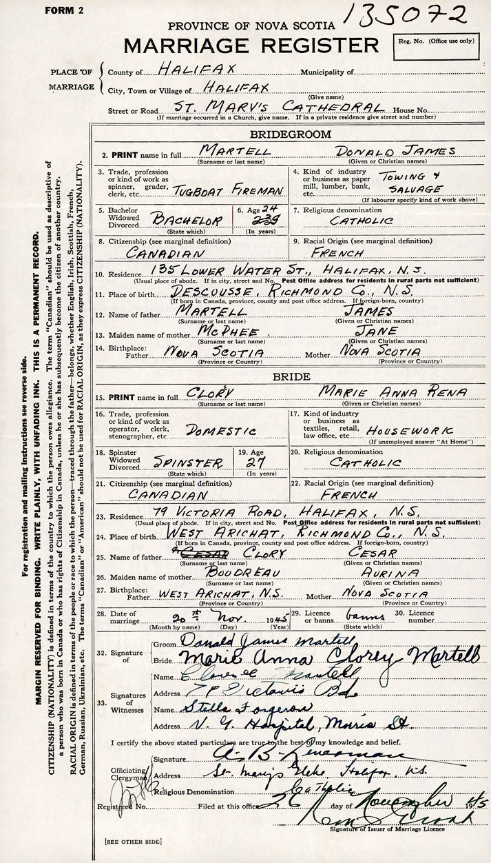 26. Place of marriage St. Mary's Cathedral Halifax, Halifax County