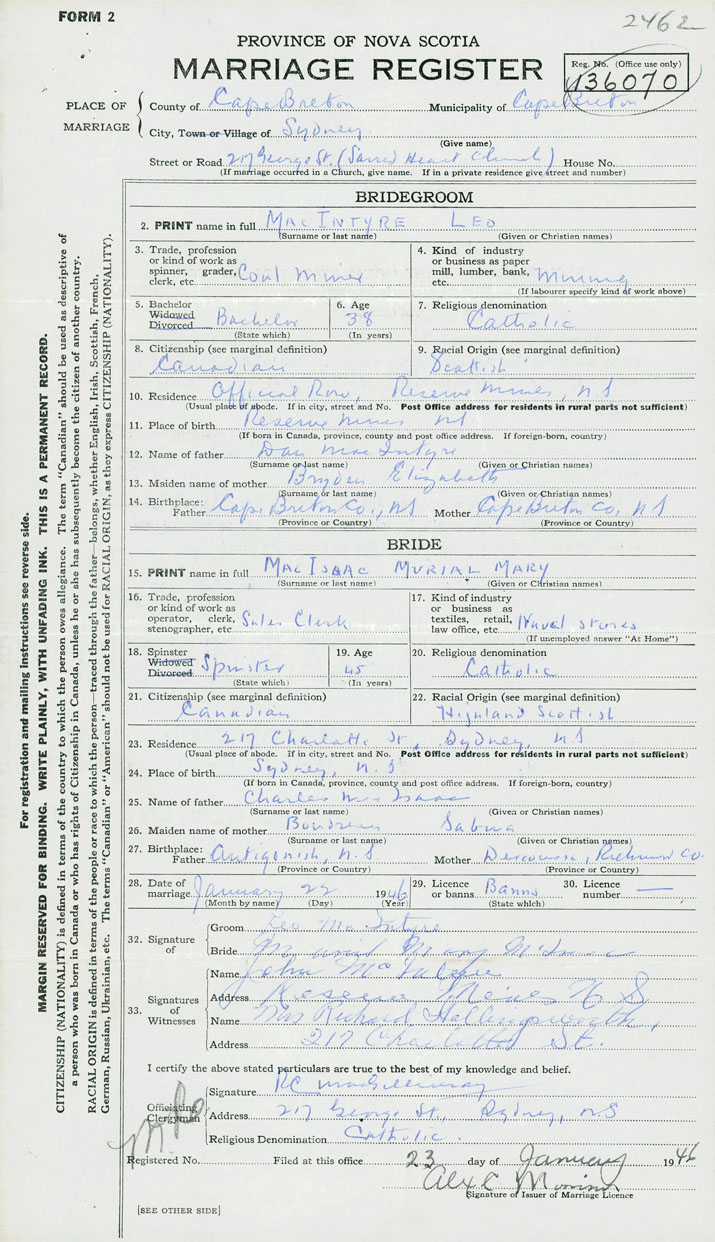 Bride Murial Mary MacIsaac