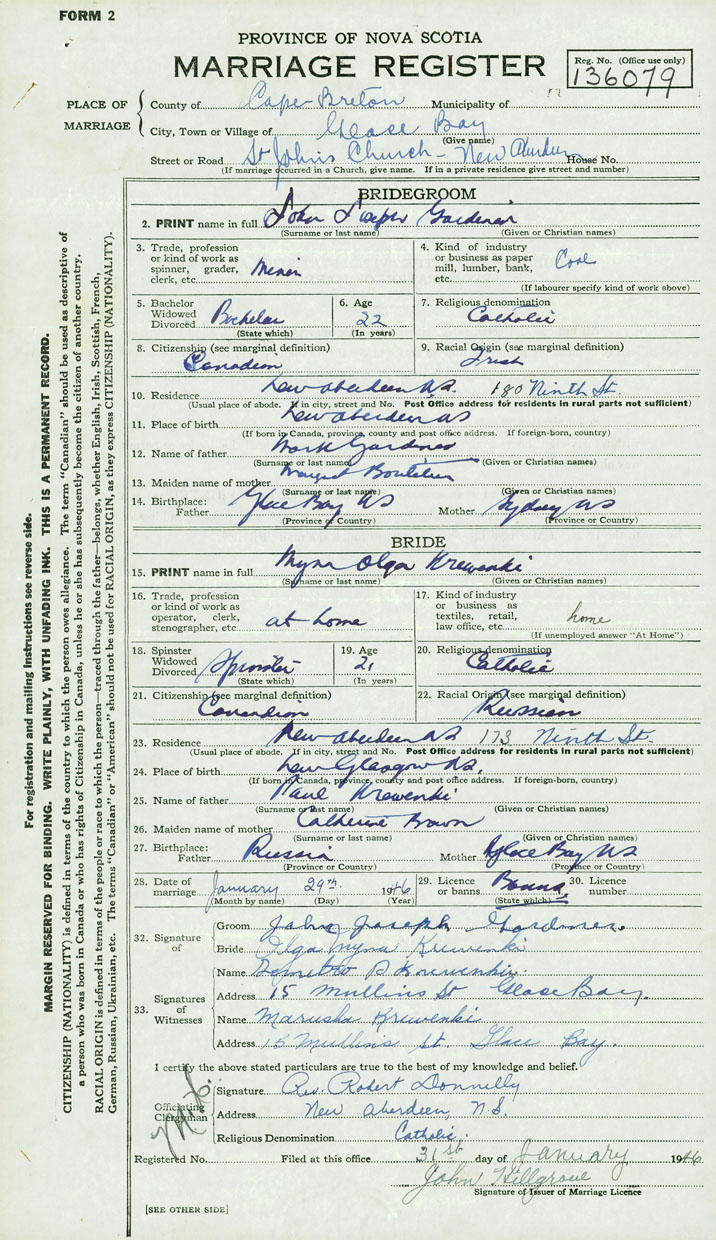 27. Birthplace Father Russia Mother Glace Bay, Cape Breton County