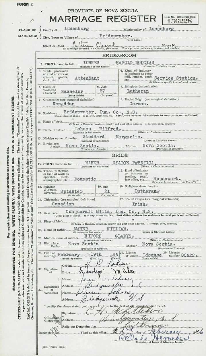 Groom Harold Douglas Lohnes