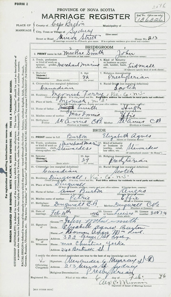 Groom John MacRae Smith