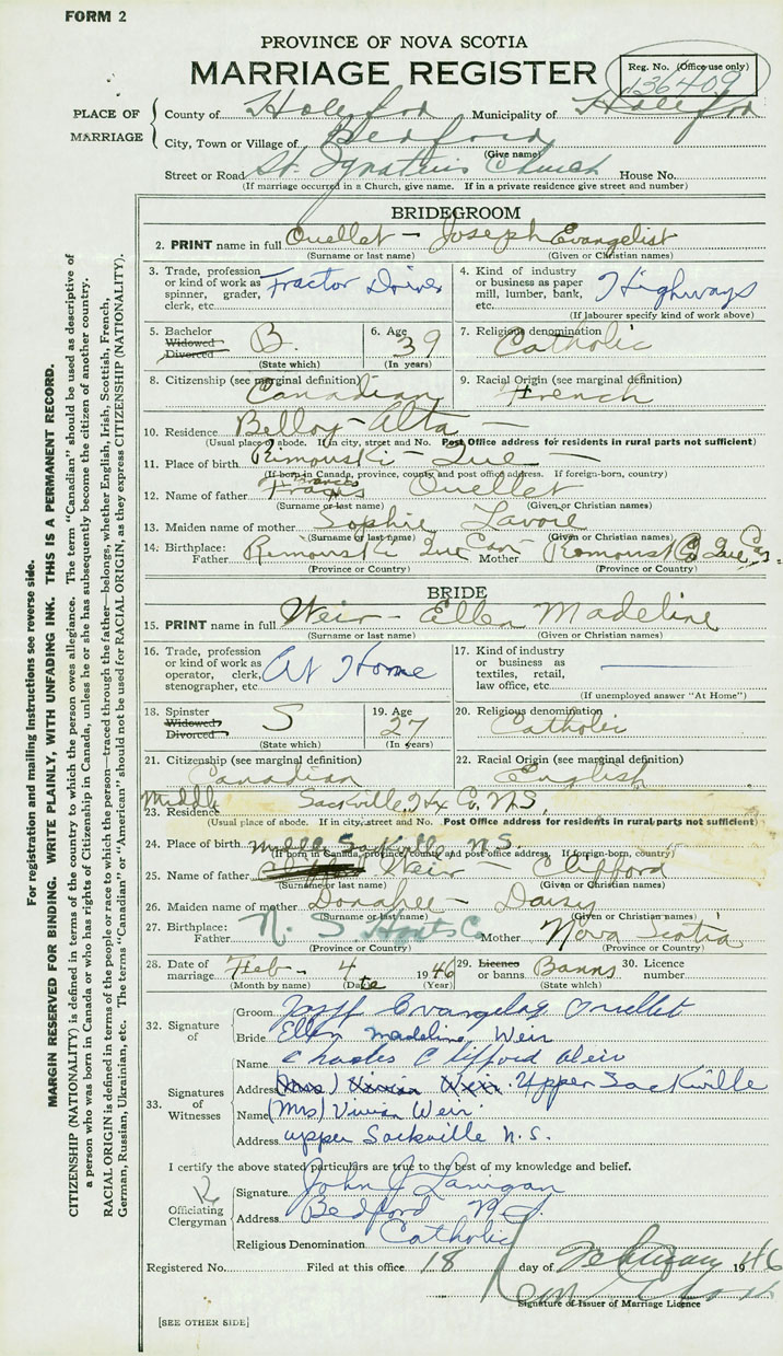 2. PRINT name in full Ouellet, Joseph Evangelist