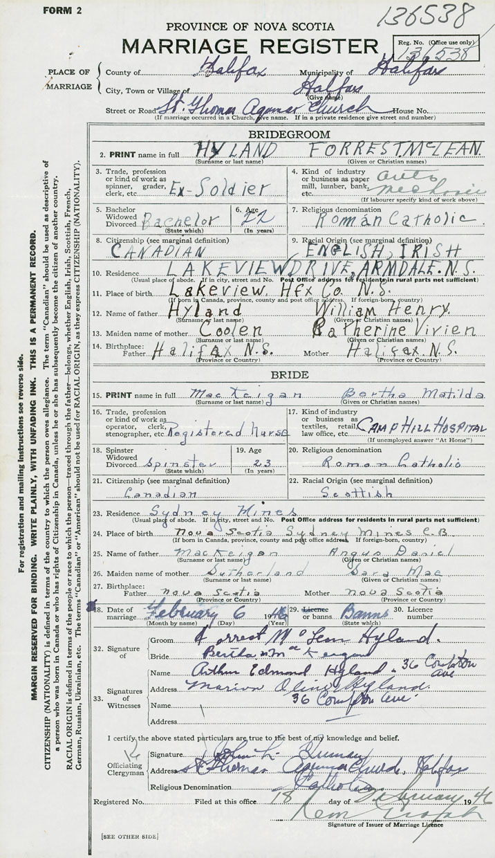 27. Birthplace Father Nova Scotia Mother Nova Scotia