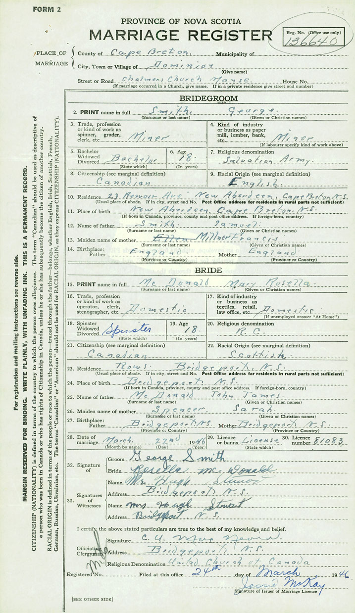 27. Birthplace Father Bridgeport, Cape Breton County Mother Bridgeport, Cape Breton County