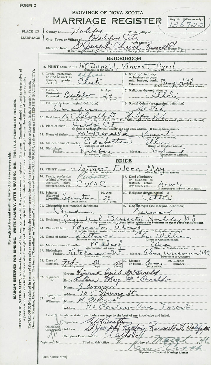 Groom Vincent Cyril McDonald
