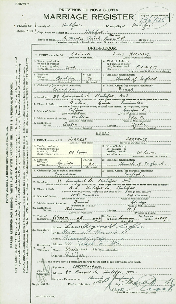 Groom Louis Reginald Coffin