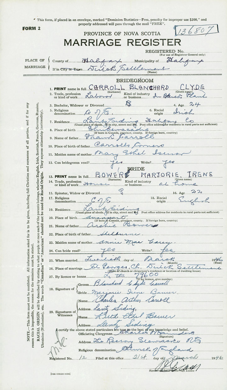 1. PRINT name in full Carroll, Blanchard Clyde