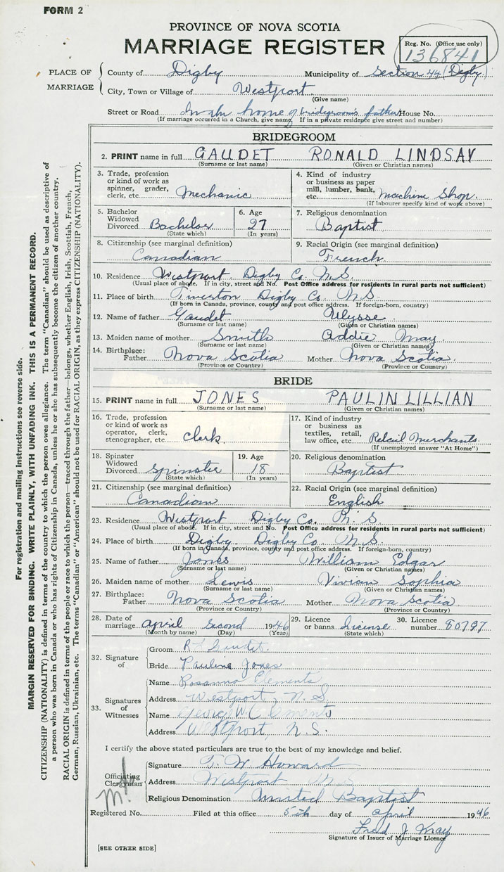 Groom Ronald Lindsay Gaudet