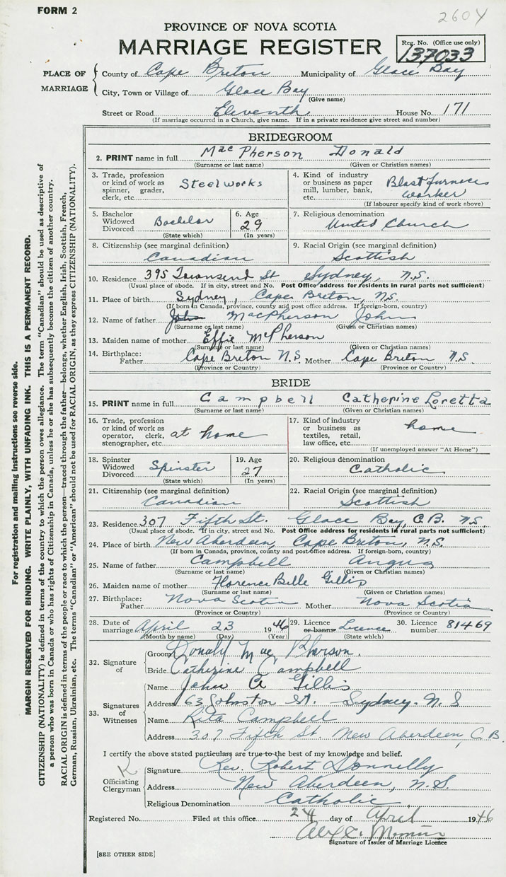 24. Place of birth New Aberdeen, Cape Breton