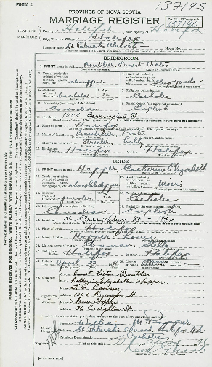 Groom Ernest Victor Boutilier