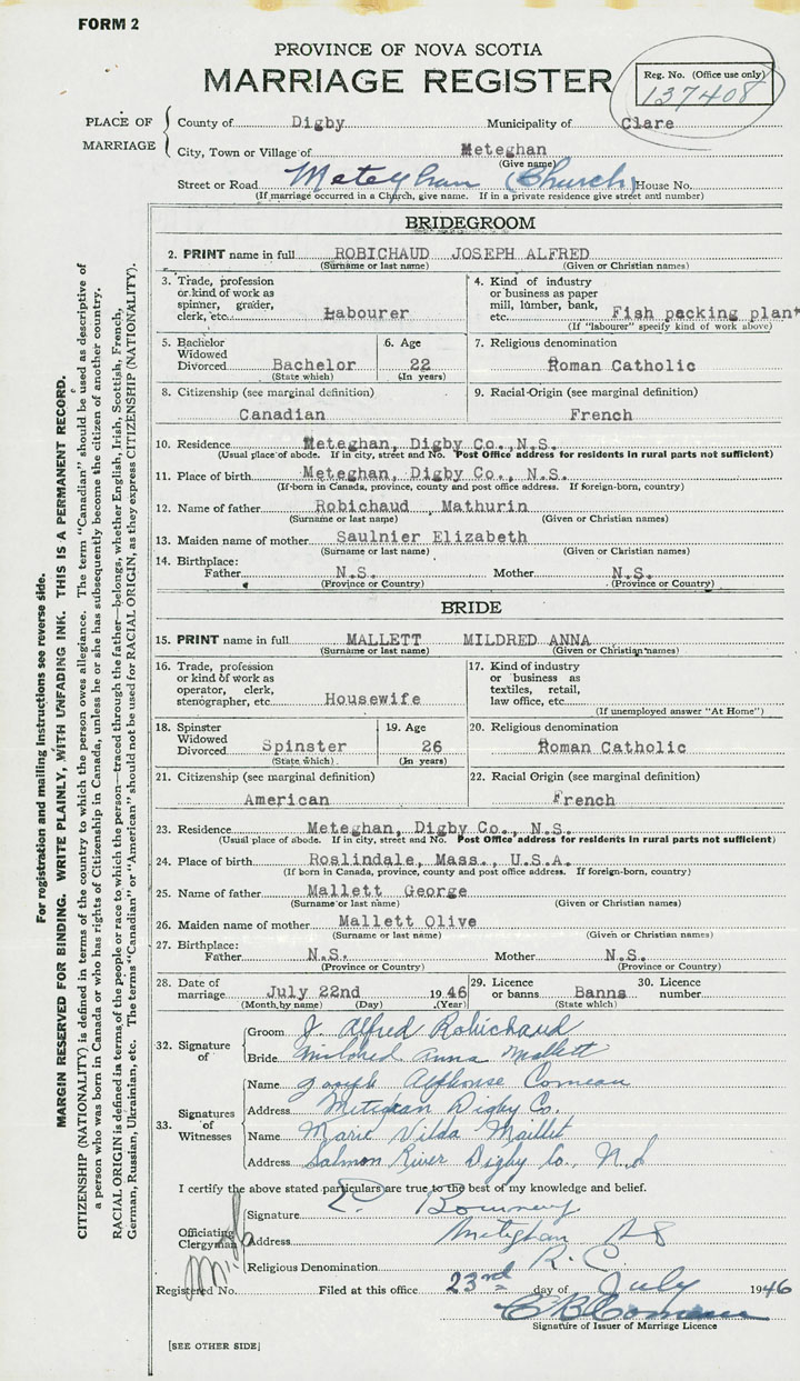 Groom Joseph Alfred Robichaud