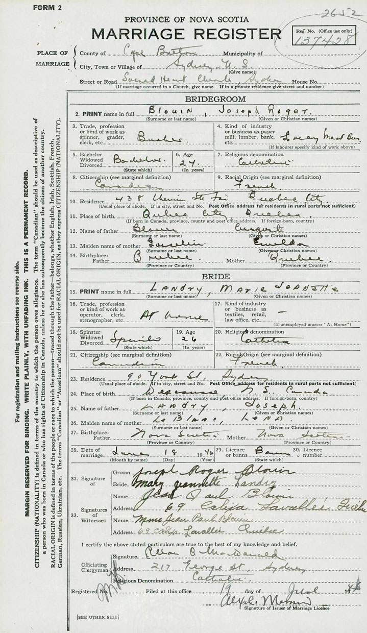 27. Birthplace Father Nova Scotia Mother Nova Scotia
