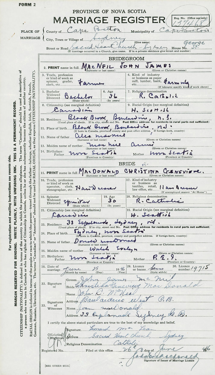 Groom John James MacNeil