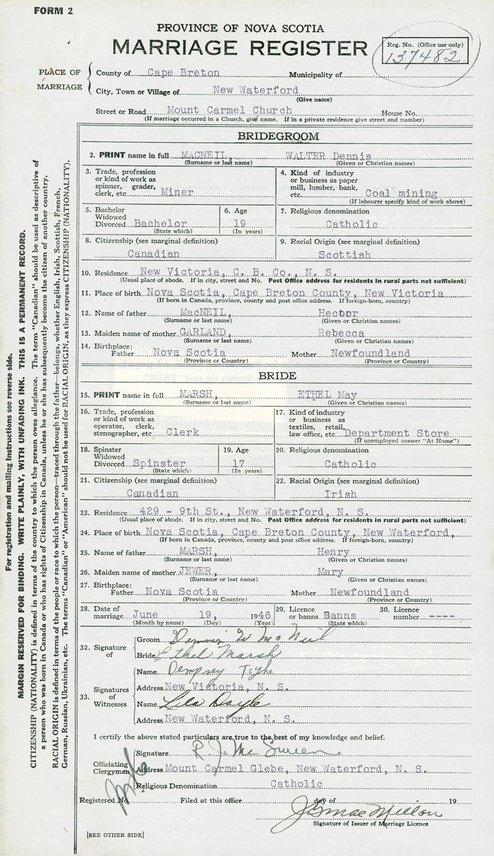 Groom Walter Dennis MacNeil