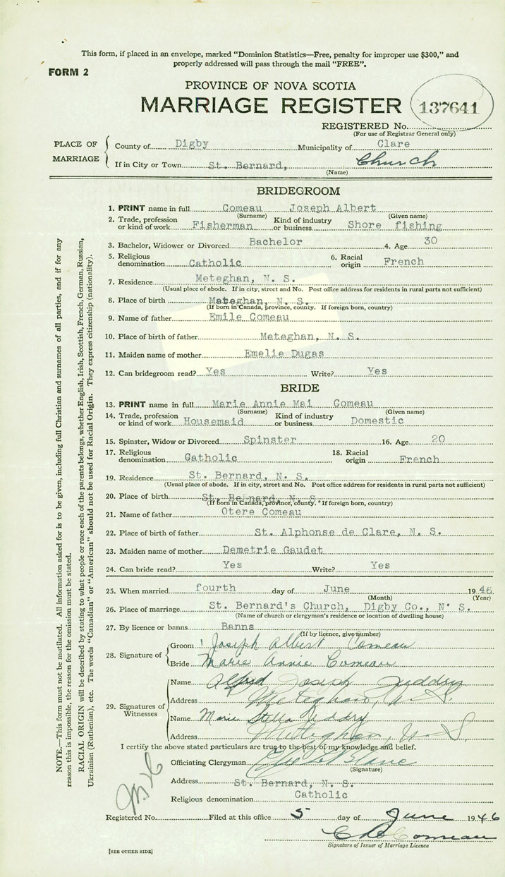 Groom Joseph Albert Comeau