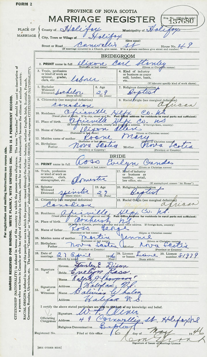11. Place of birth Africville, Hfx. County