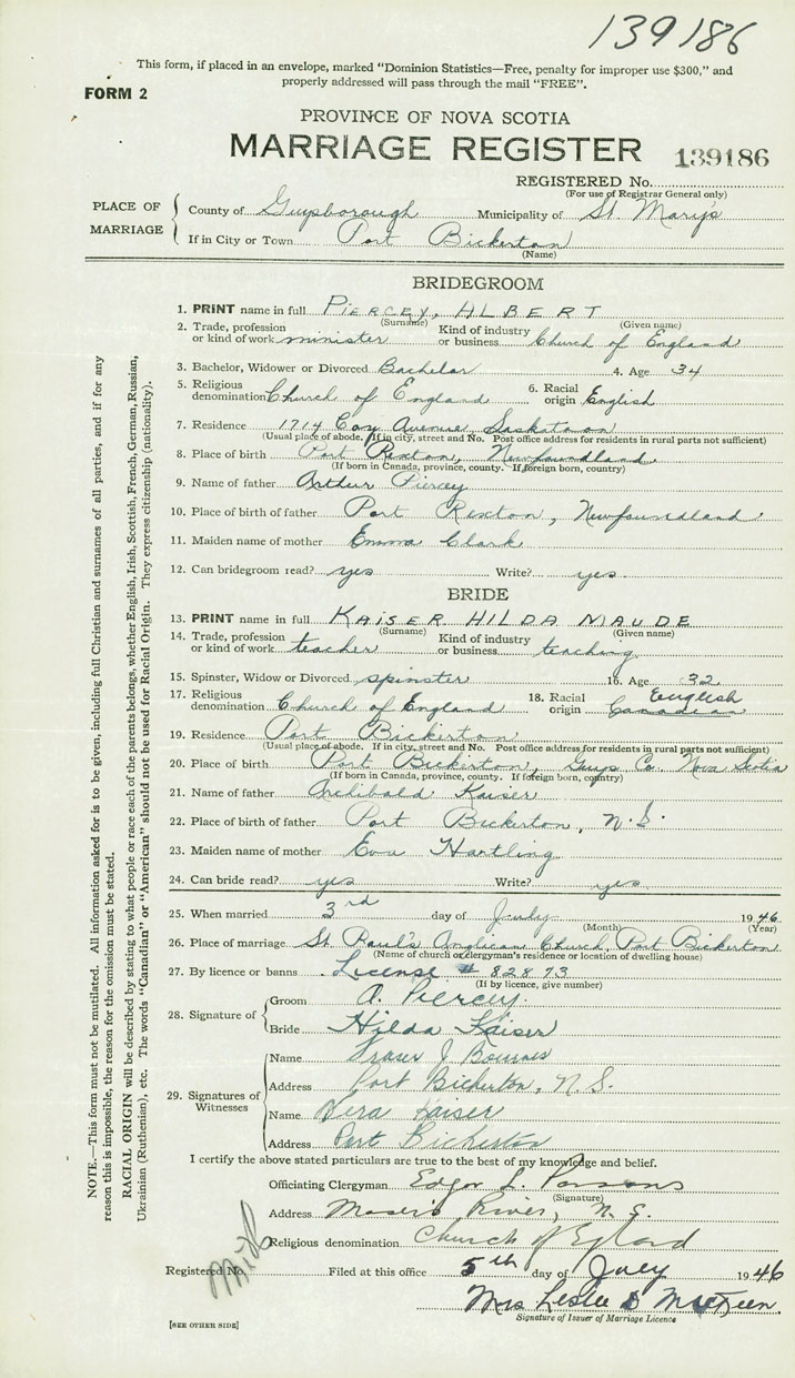 Groom Albert Piercey