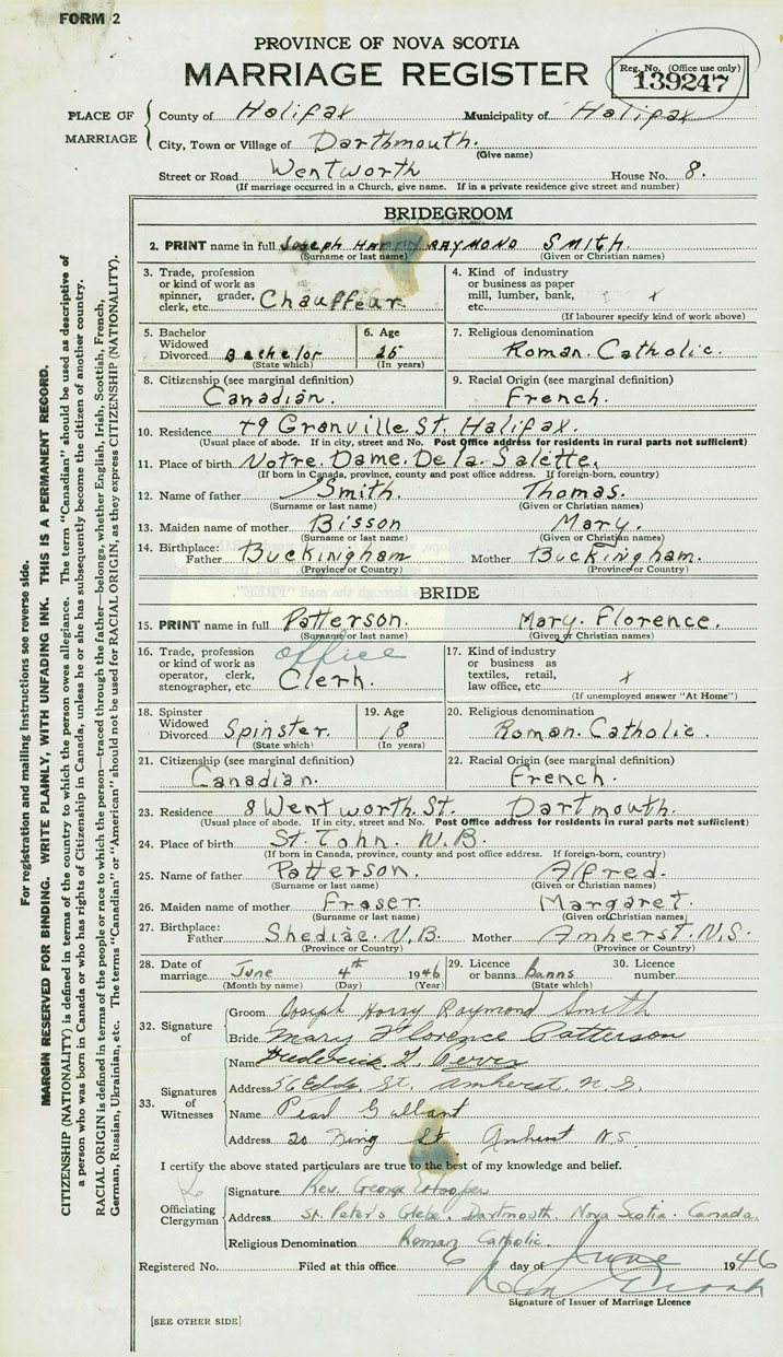 Groom Joseph Harry Raymond Smith