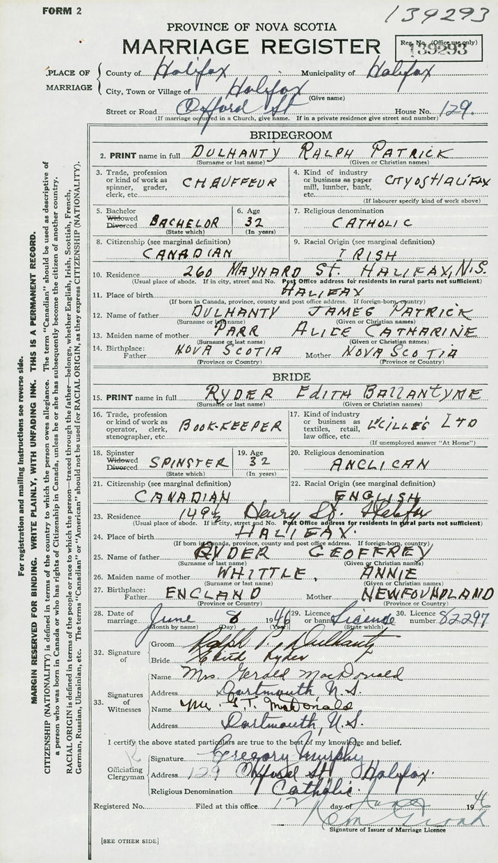 2. PRINT name in full Dulhanty, Ralph Patrick