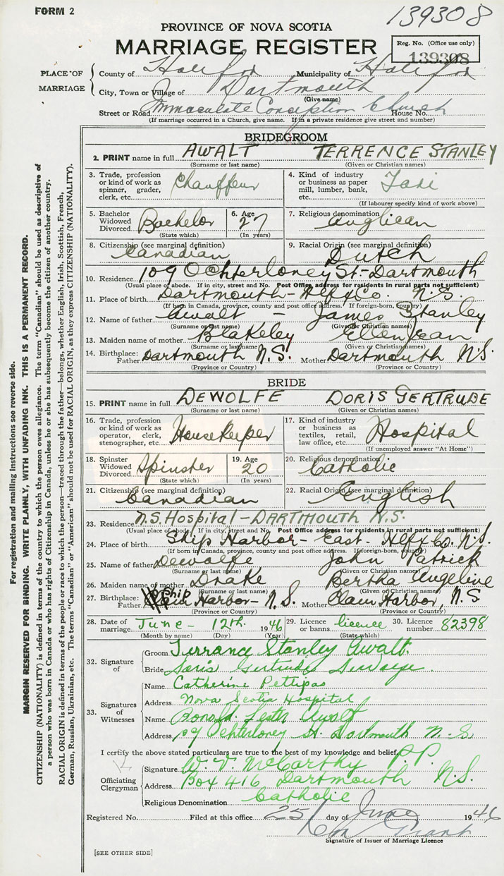 11. Place of birth Dartmouth, Hlfx. County