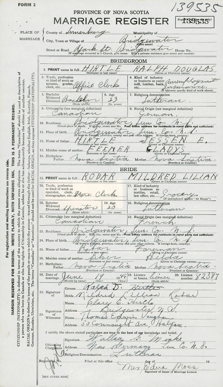 Groom Ralph Douglas Hirtle