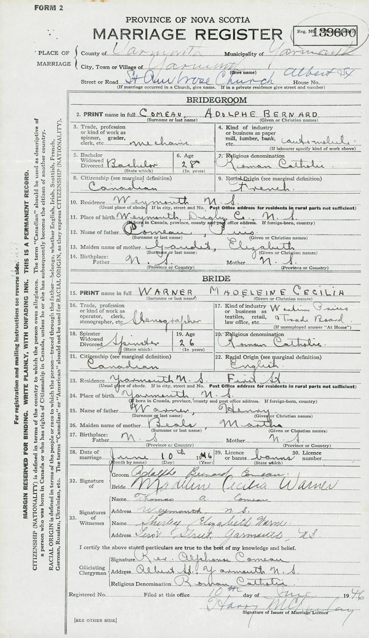 Groom Adolphe Bernard Comeau