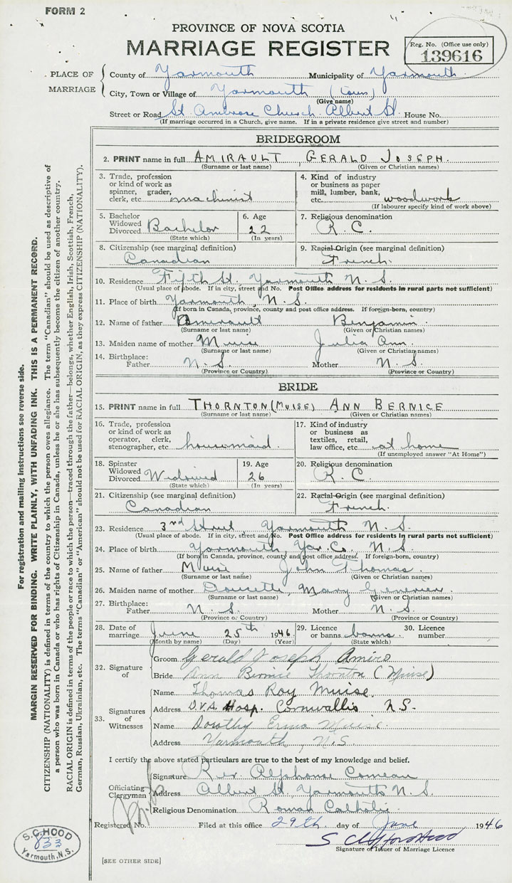 Groom Gerald Joseph Amirault