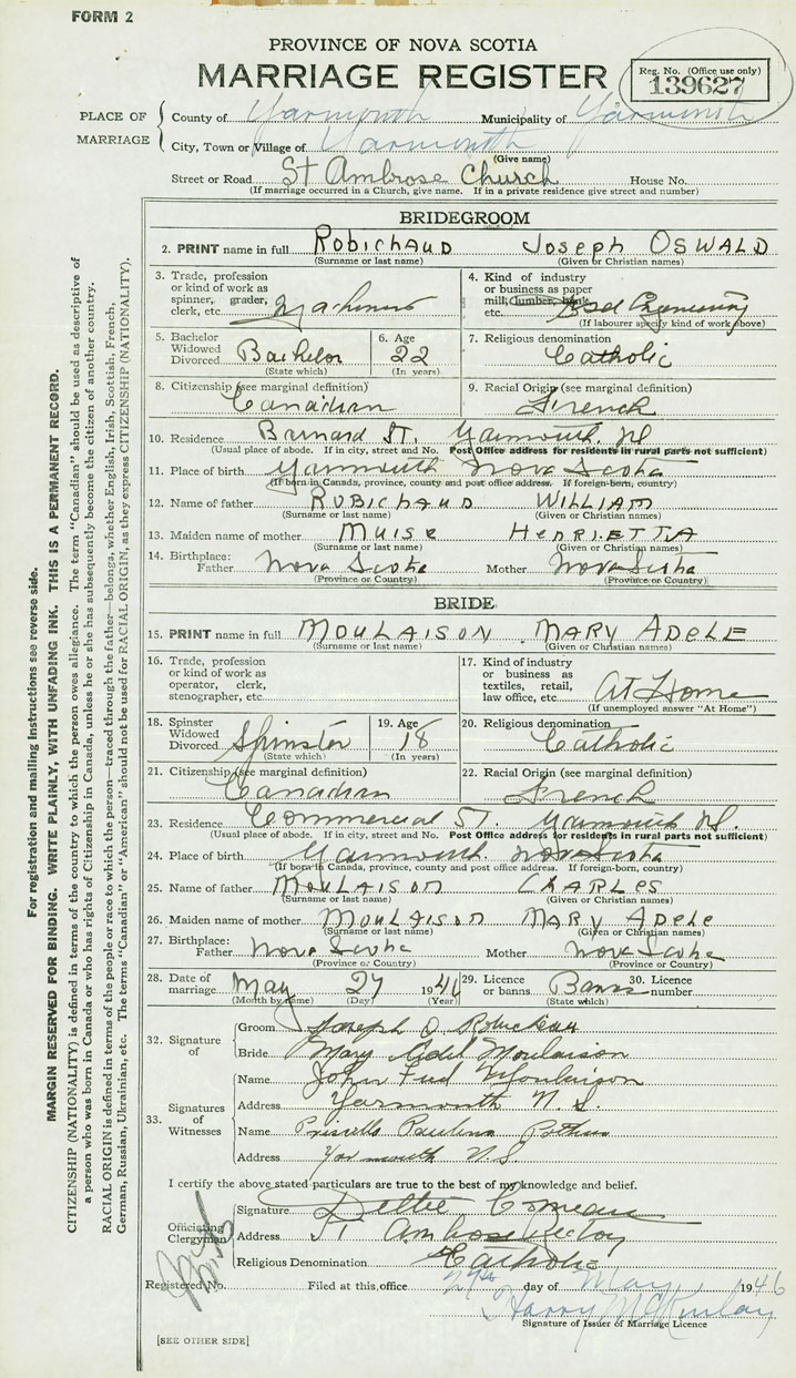 Groom Joseph Oswald Robichaud