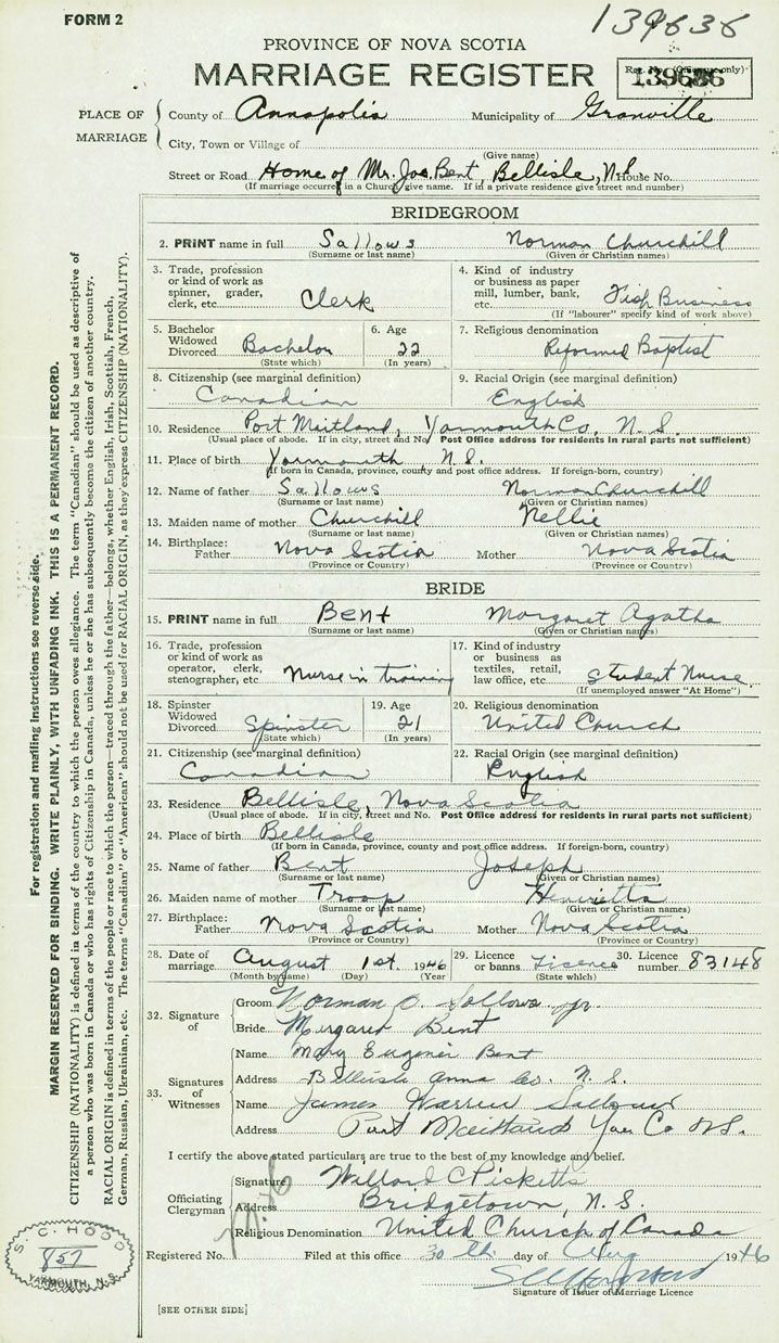 12. Name of father Norman Churchill Sallows