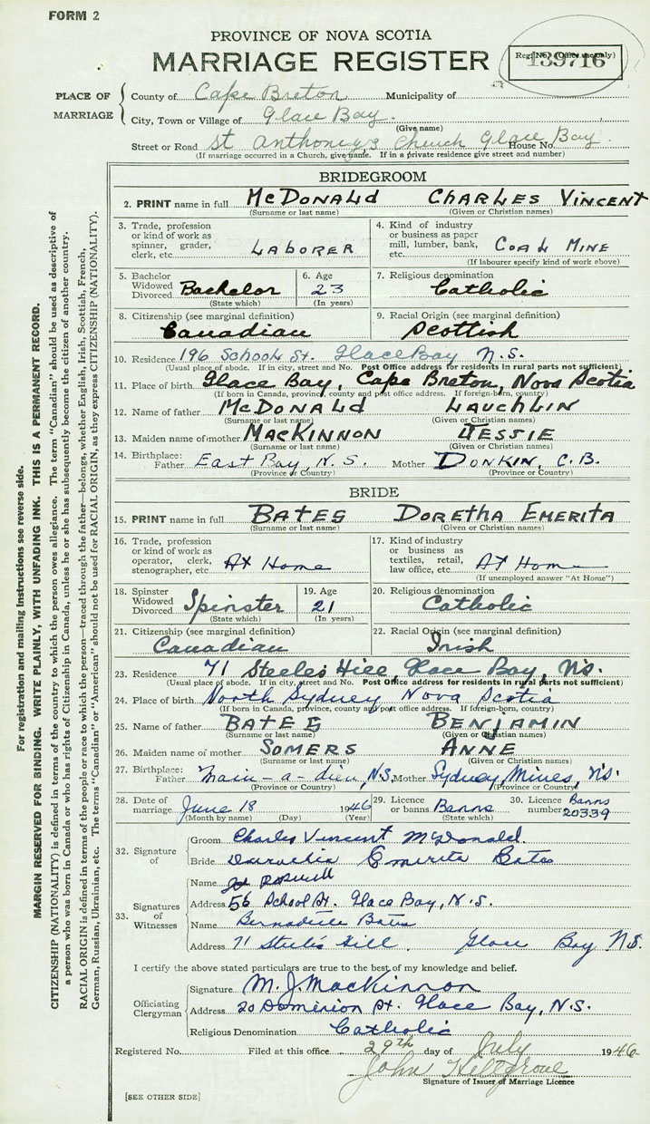 Groom Charles Vincent McDonald