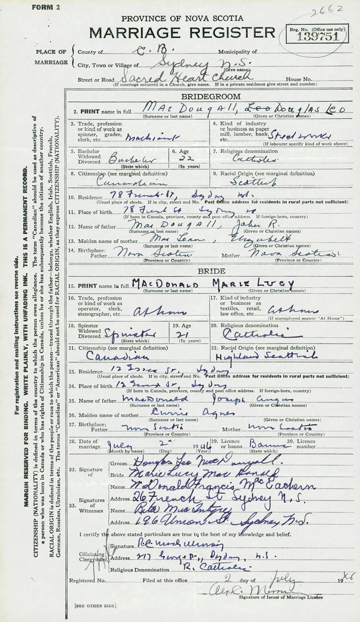 2. PRINT name in full MacDougall, Douglas Leo