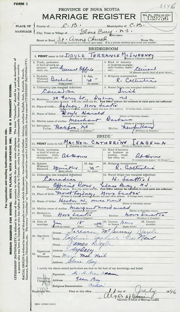2. PRINT name in full Doyle, Terrance McSweeney