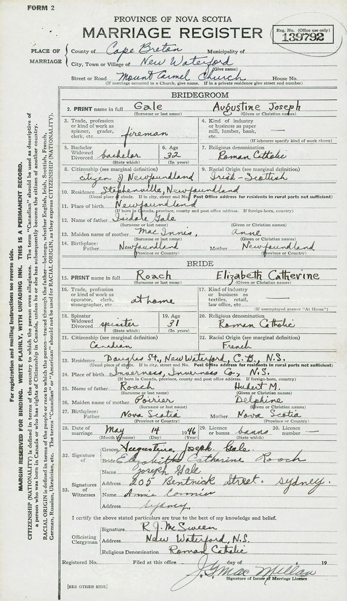 Groom Augustine Joseph Gale