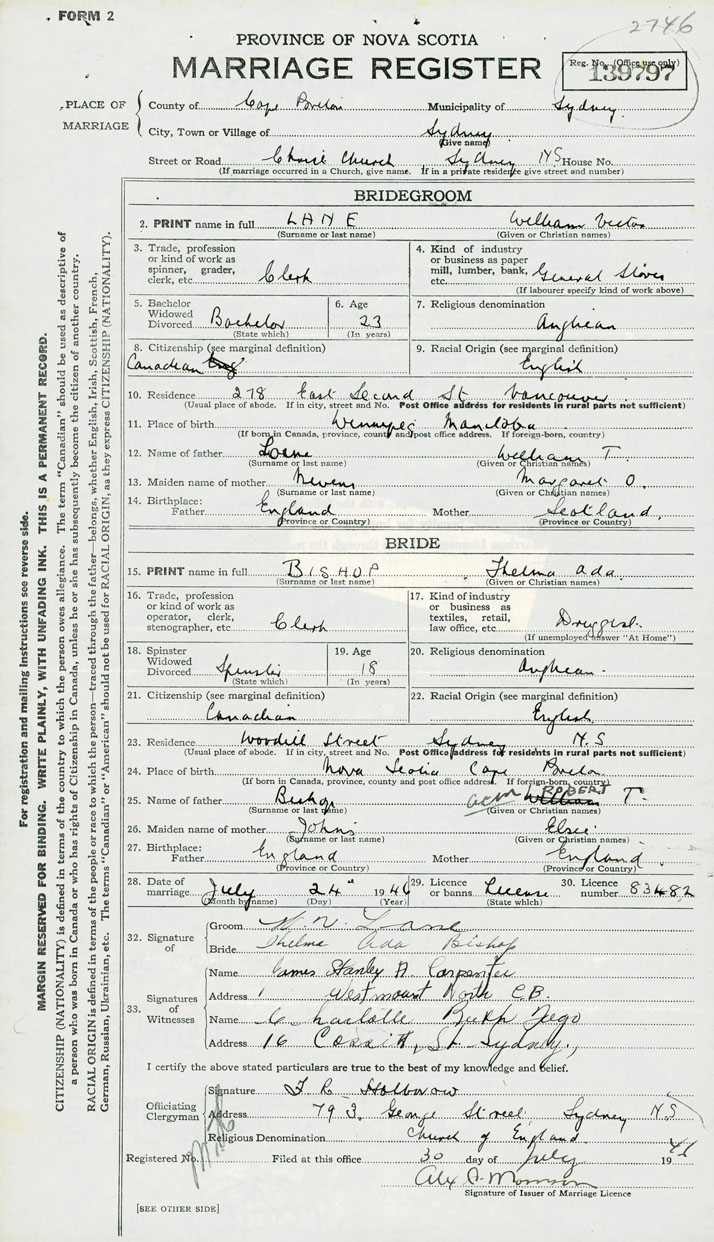 2. PRINT name in full Lane, William Victor