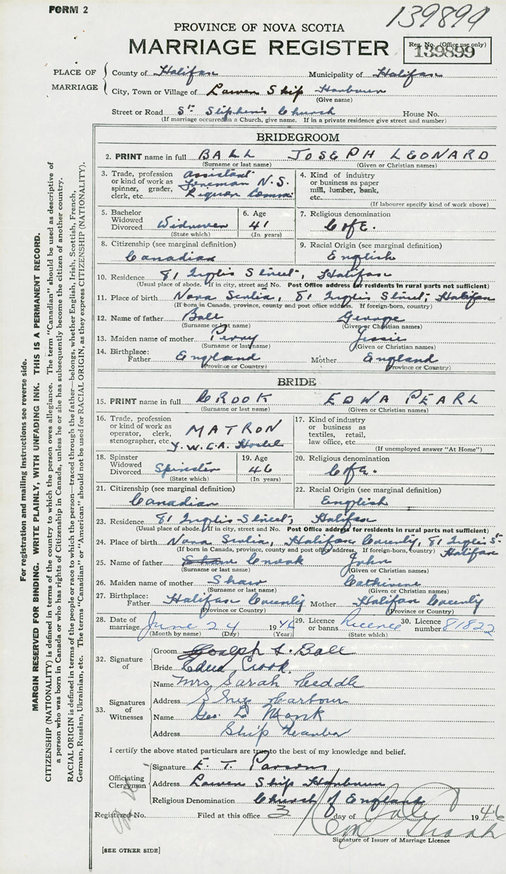 24. Place of birth Nova Scotia, Halifax County, Halifax